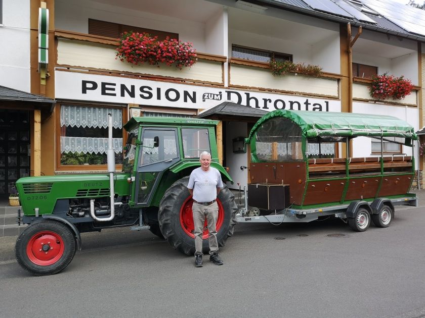 Unser Angebot für Gruppen. Fahren Sie mit dem Traktor in einem Planwagen durch die Weinberge der Mosel und genießen Sie die edlen Weine der Region.