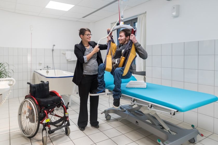 Die rollstuhlgerechten Zimmer sind mit Pflegebetten, behindertengerechten Schränken, ebenerdiger Dusche und unterfahrbaren Waschbecken ausgestattet. Die Zimmer für Gäste mit einer Gehbehinderung sind ebenfalls mit Pflegebetten und stufenloser Dusche versehen.