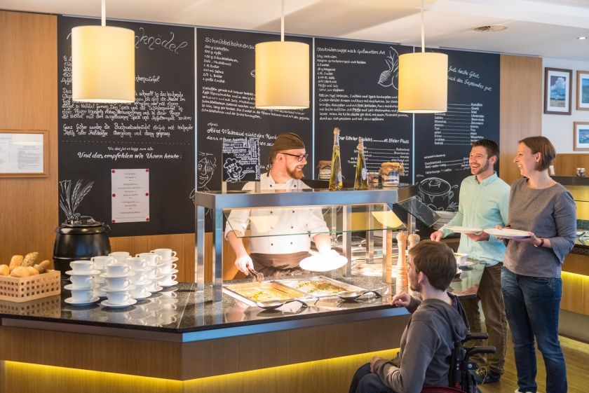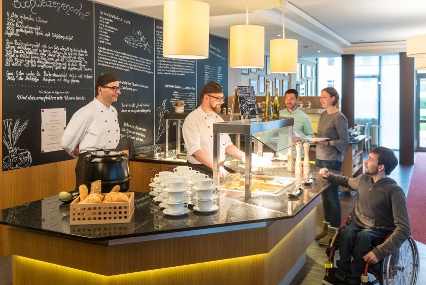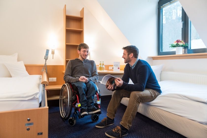 Dabei hilft, dass bei der Bauplanung eine wirklich behindertengerechte Ausstattung von vorneherein umgesetzt worden ist. So sind von den 26 Hotelzimmern 9 Zimmer für Rollstuhlfahrer und 4 Zimmer für gehbehinderte Gäste eingerichtet. Das Hotel und die Außenbereiche sind barrierefrei, zur Verfügung stehen Pflegebetten, Tuchlifter und ein mobiles Notrufsystem.