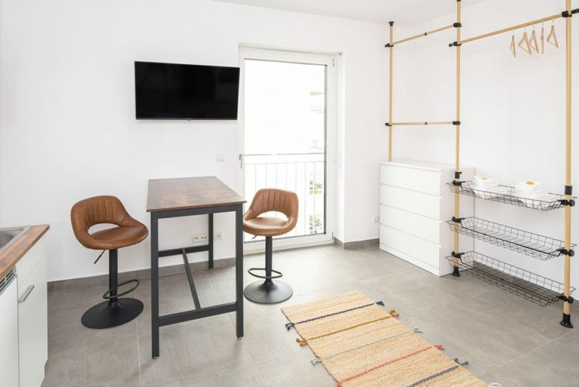 Alle Zimmer bieten modernes und wohnliches Ambiente mit eigener Mini-Küche, Badezimmer mit Dusche/WC, bequemen und hochwertigen Betten, Kleiderschrank, Schreibtisch, Stuhl, Sessel und kostenfreiem Internet via WLAN. Die meisten Zimmer verfügen über einen SMART TV.