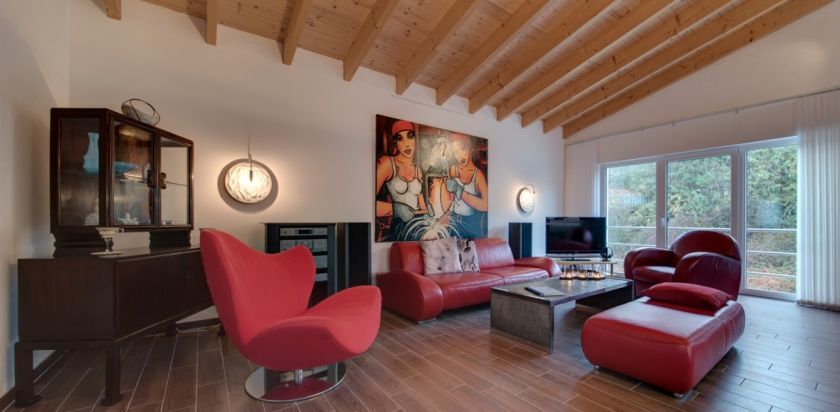 Sie wohnen klimaneutral auf 90 m². Die moderne Wohnung bietet einen großen Wohn-/Eßbereich, Küche mit Vollausstattung, zwei Schlafräume und Bad mit Wanne und Regendusche. Der angrenzende Garten mit Teich lädt zum Entspannen und Verweilen ein.
