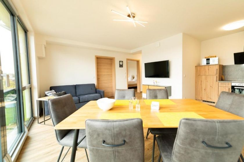 - Diese Appartements haben eine Größe bis 55 m² und verfügen über 2 Schlafzimmer