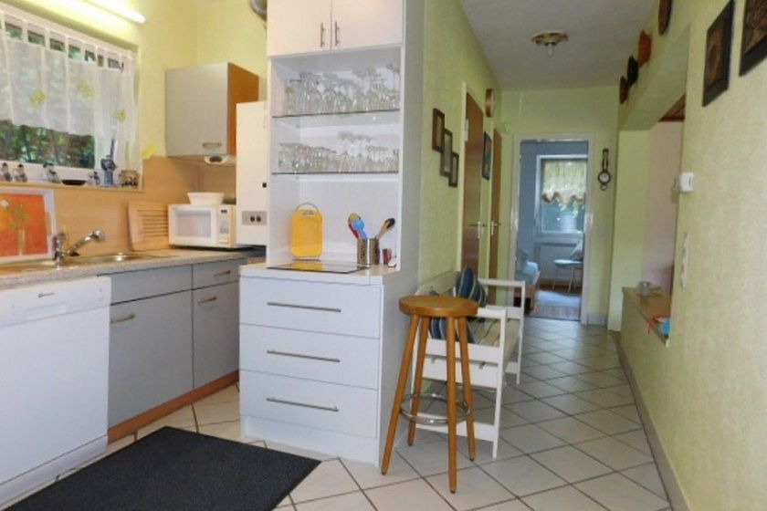 - Die komplett modern eingerichtete Küche lässt keinen Wunsch offen. Reichlich Geschirr, Gläser, Töpfe, Pfannen und Besteck warten auf ihren Einsatz für´s leibliche Wohl ! Außerdem stehen ein 4-fach Ceranfeld, Dunstabzugshaube, Spülmaschine, Mikrowelle, eine Kühlschrank-Gefrierkombi, sowie Kaffeemaschine und viele Extra´s zur Verfügung.