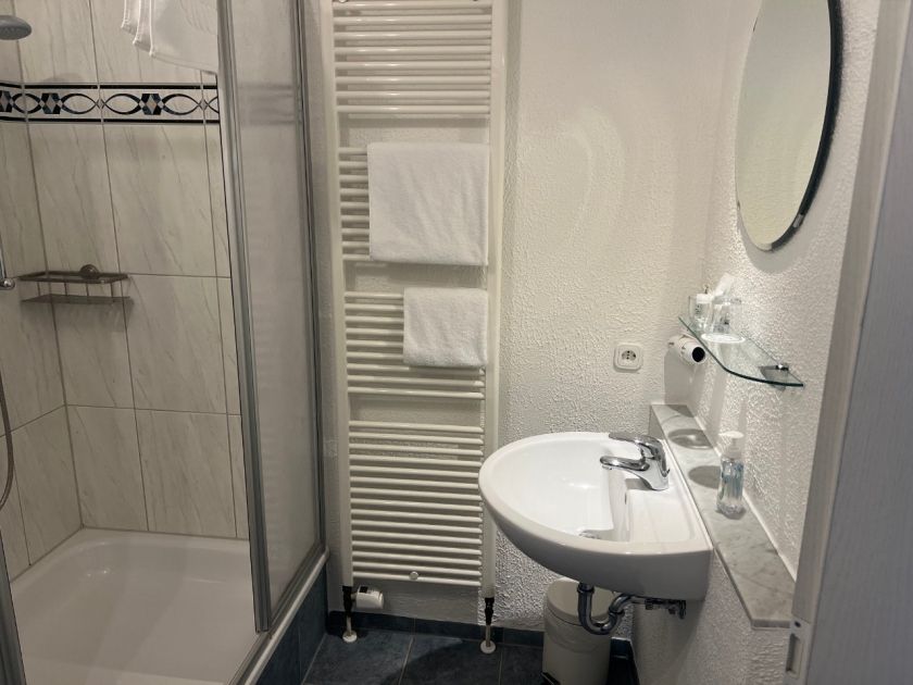 - Großes Bad mit ebenerdiger Dusche, WC und Handtuchheizkörper sowie Fön und kostenfreien Badartikeln (Seife, Shampoo, etc.). Kostenfreies WLAN, Flachbild-TV, SAT-TV, zwei Betten á 90x200 cm, Kleiderschrank, Tisch und Stuhl.