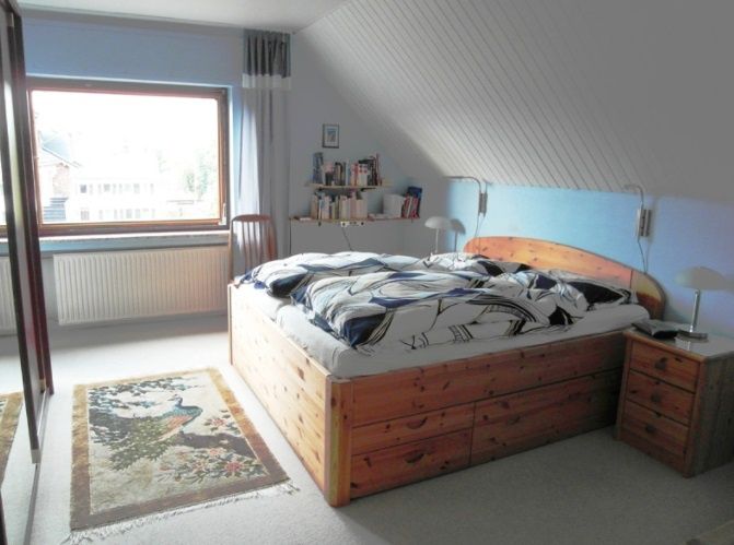 - Im DG befinden sich: ein Schlafzimmer mit Doppelbett, ein Gästezimmer mit Einzelbett, sowie zwei Bäder: WC, Badewanne, Waschbecken und Dusche mit Waschbecken.