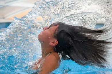 Schwimmen Sie Ihre Bahnen im 50 Meter Becker oder haben Sie jede Menge Spaß auf der Rutsche oder dem Sprungturm.