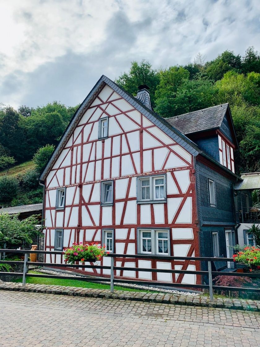 Unsere modern ausgestattete Ferienwohnung (100 m²) ist direkt am Wanderweg "St. Oswaldschleife" in Manubach einem kleinen Ort im Seitental des Mittelrheins gelegen.