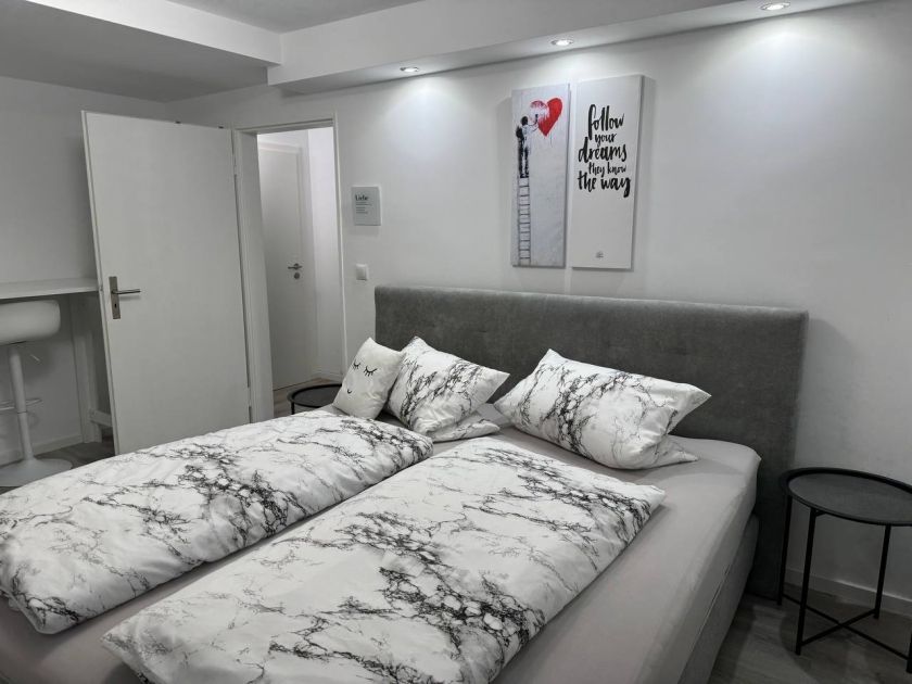 Das Apartment im Untergeschoss ist liebevoll, hell und modern eingerichtet. Die Schlafzimmer sind mit Boxspringbetten ausgestattet. Wer einmal bei uns war, wird sich in den Träume-Bauer verlieben und in den romantisch-verträumten Ort Venningen.