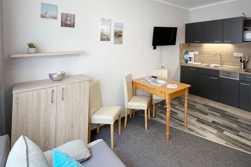 - Besonderheit: Durch Zubuchung der Ferienwohnung #5 lässt sich das Apartment mit bis zu 6 Personen belegen. Die Wohnfläche vergrößert sich auf rund 60 m².