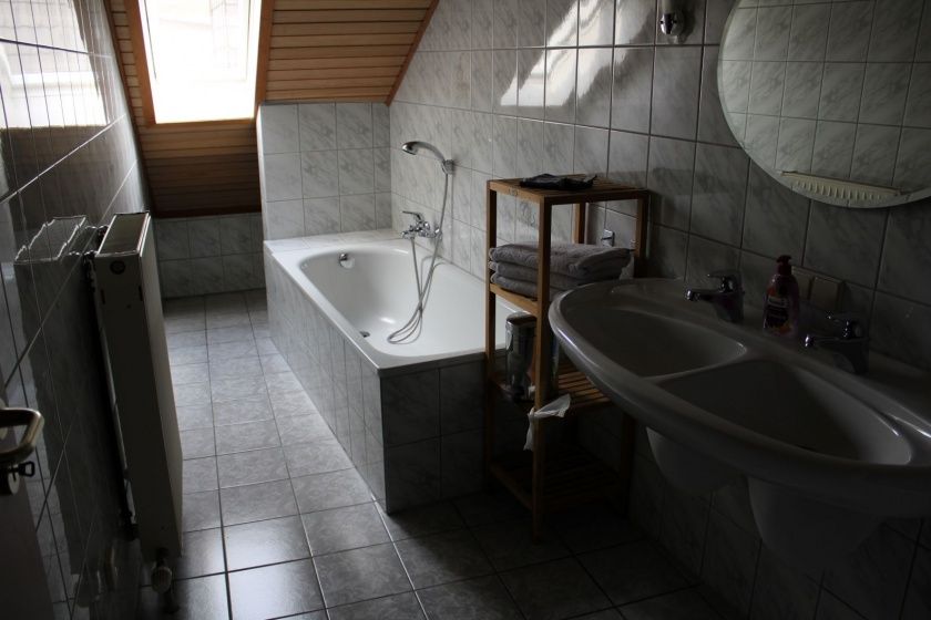 Die Wohnung verfügt über 3 Schlafzimmer mit bis zu 6 Schlafplätzen. Zudem verfügt die Wohnung, welche sich über 2 Stockwerke erstreckt über 2 Bäder mit Dusche und WC sowie einer Badewanne im oberen Bad und einer Waschmaschine im Unteren.