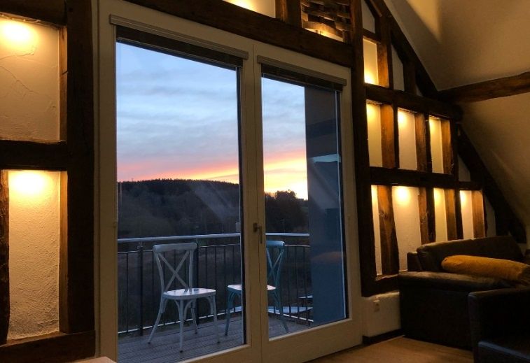 Belle Vue ist unser größtes Appartement und besticht durch die verbauten, hochwertigen Materialien. Der offene Dachstuhl des 18. Jahrhunderts lassen das Flair des Hauses in dieses Appartement einziehen. Eine moderne Küche rundet das Bild ab und ein Fahrstuhl sorgt dafür, dass die Wohnung barrierefrei zugänglich ist.