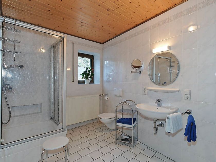 Es gibt ein großes Bad mit Dusche und WC, sowie ein separates WC. Jedes Schlafzimmer verfügt über ein Waschbecken und eines der Zimmer hat eine eigene Dusche.