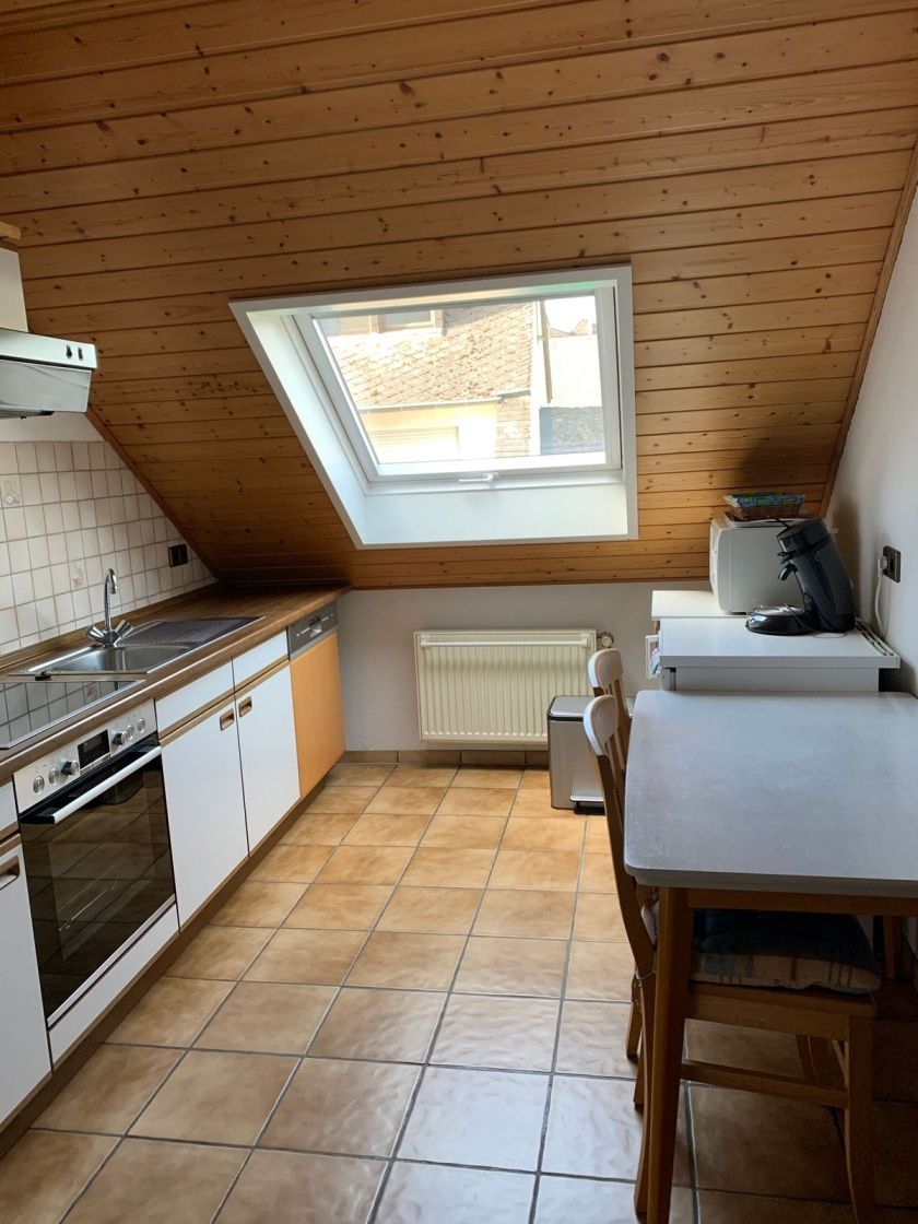 An den großzügigen Wohnraum mit moderner Einbauküche schließt ein kleiner Balkon mit Blick auf die Weinberge an. Die Wohnung befindet sich in der zweiten Etage und bietet im Flur viel Platz für Jacken und Schuhe.