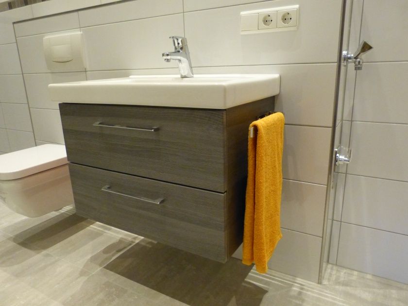 - Das Bad hat eine geräumige Dusche mit Regenwald-Kopfbrause, einen großzügigen Waschtisch mit Unterschrank, Haartrockner und ein Handtuchheizkörper. Hand– und Duschtücher liegen für Sie kostenfrei im Appartement bereit.