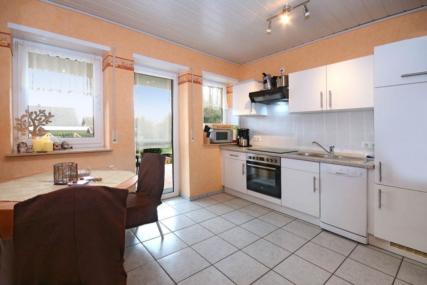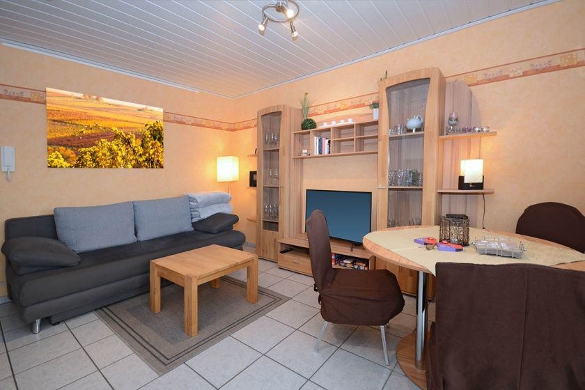 Geschmackvoll eingerichtete Ferienwohnung im Erdgeschoss, neben einem hellen Wohn–Esszimmertrakt befindet sich ein geräumiges Schlafzimmer und ein Duschbad.