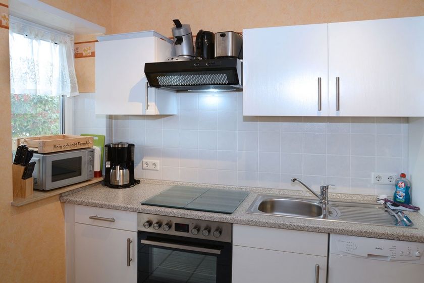 - voll ausgestattete Küche mit Backofen. Kaffeemaschine, Toaster, Wasserkocher, Mikrowelle, Kühlschrank mit Gefrierfach und Geschirrspüler