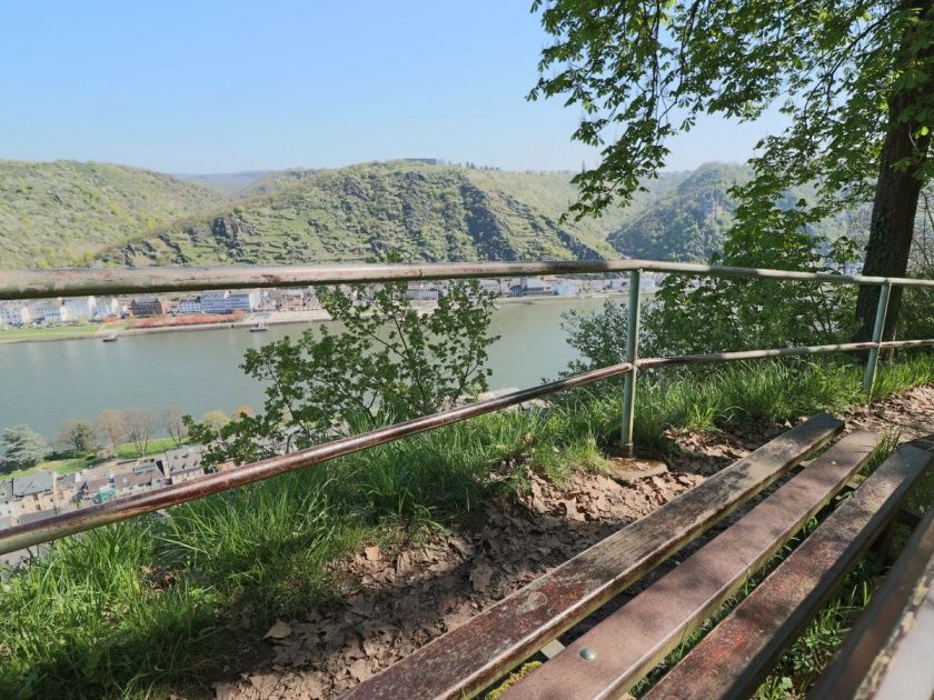 70m von Ihrer Haustür entfernt finden Sie einen Aussichtspunkt von welchem Sie die Städte St Goar, St Goarshausen die Festung Rheinfels, Burg Katz und Burg Maus spektakulär beobachten können.