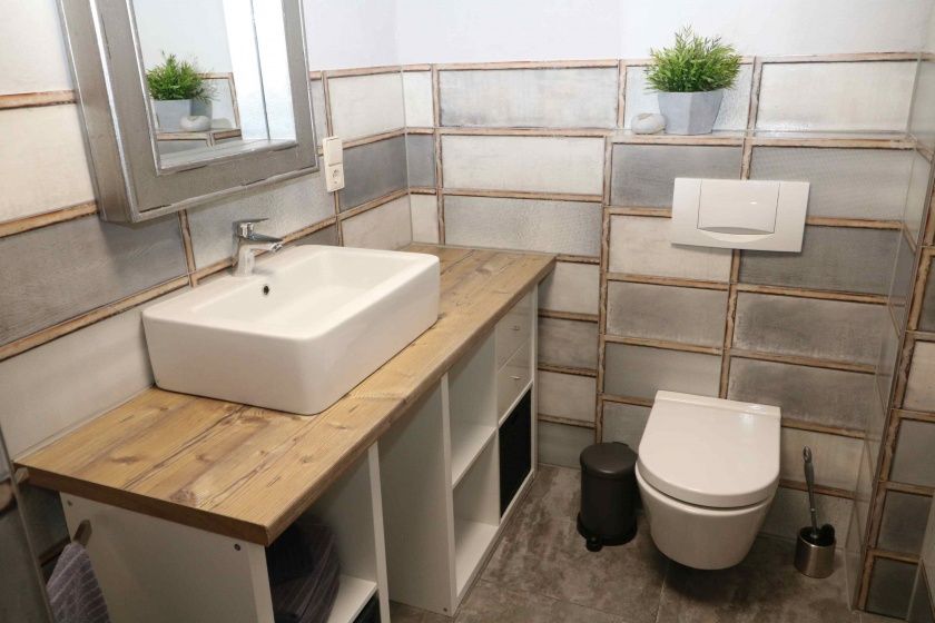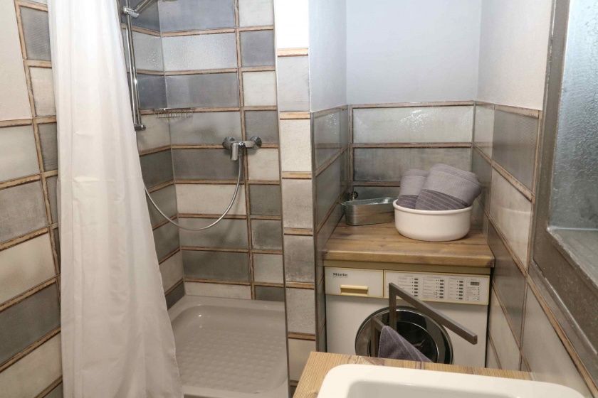 - Badezimmer Dusche, WC, Badetüchern, Föhn und Waschmaschine