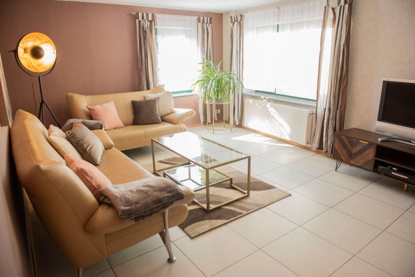 - Wohnzimmer mit Sofa, TV, Radio und WLAN