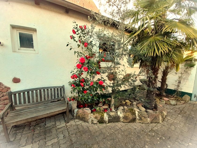 - Ferienhaushof in mediterranem Ambiente mit Palmen, Agave, Olive u. a.