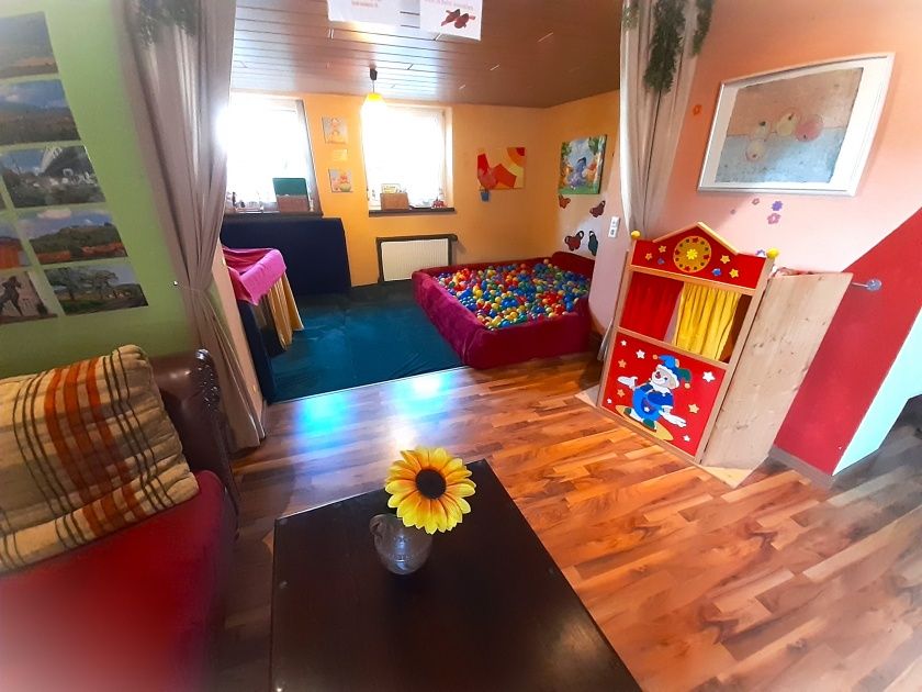 - Spielzimmer 2 ( kleine Rutsche, Kinderküche, Maltisch, Spieletisch mit Mensch-ärgere-dich-nicht / Schach / Dame)