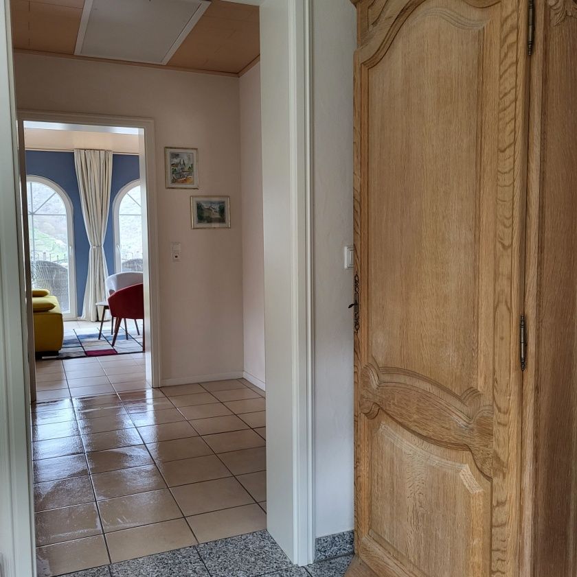 Vom Wohnzimmer aus kann man noch auf den 2. Balkon gehen. Auch bei schlechtem Wetter hat man durch die türgroßen Fenster von allen Zimmern einen fantastischen Blick ins Rheintal.