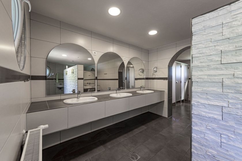 Wir legen Wert auf saubere und gepflegte Dusch-, und Toilettenanlagen. Selbstverständlich halten wir für Ihre kleinsten auch einen Baby-Wickelraum bereit.