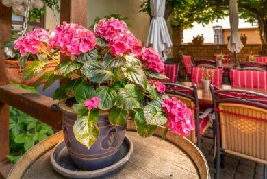 An unser Restaurant angeschlossen finden Sie unseren gemütlichen Biergarten, in dem Sie in den Sommermonaten Ihre Menüs unter 100 jährigen Kastanien direkt am Bachlauf genießen können.