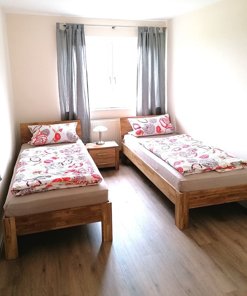 - zwei getrennte Schlafzimmer (ein Zimmer mit Doppelbett und ein Zimmer mit 2 Einzelbetten)