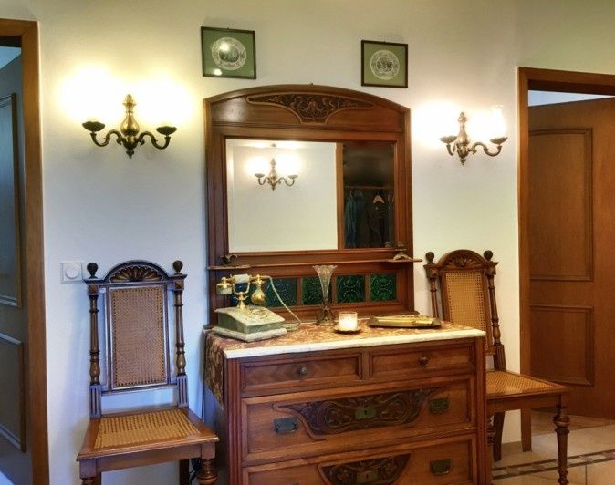 Das Erdgeschoß und der 1. Stock sind im Stil der alten Zeit eingerichtet. Fühlen Sie den Geist der Jahrhundertwende, ohne auf die Annehmlichkeiten der modernen Welt verzichten zu müssen. Da uns unablässig etwas einfällt, was Ihren Aufenthalt angenehmer macht, unterliegt das Haus und Grundstück einem ständigen Wandel.