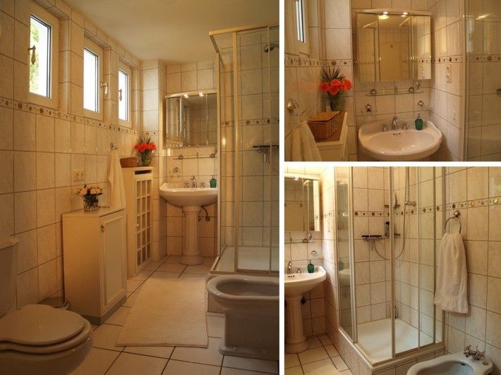 - Sanitär: WC, Bidet, Dusche, Handtücher, Föhn