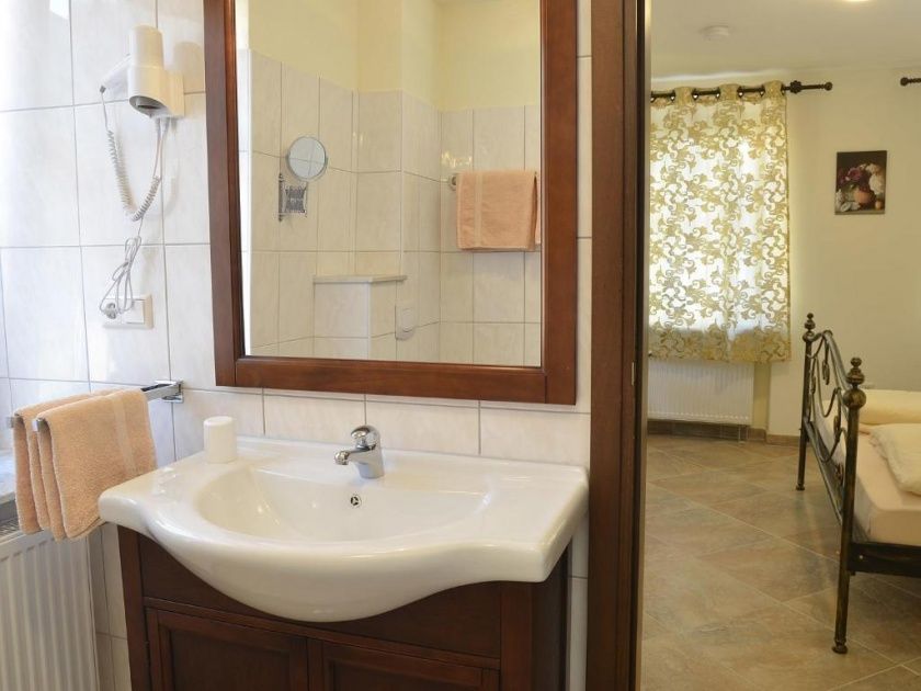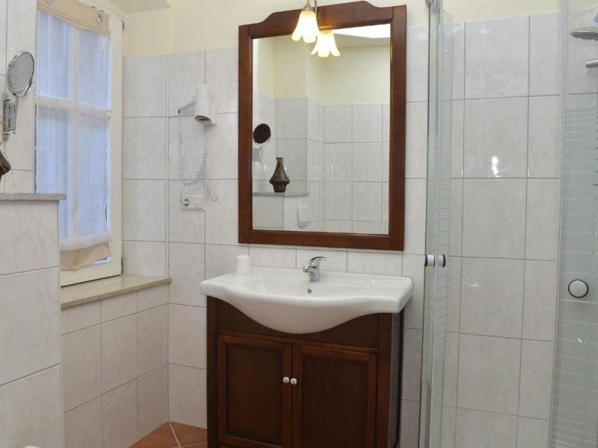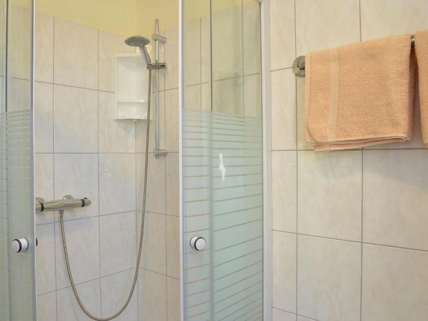 - Bad mit Dusche (ebenerdig), WC, großem Spiegel, Schminkspiegel, Haartrockner