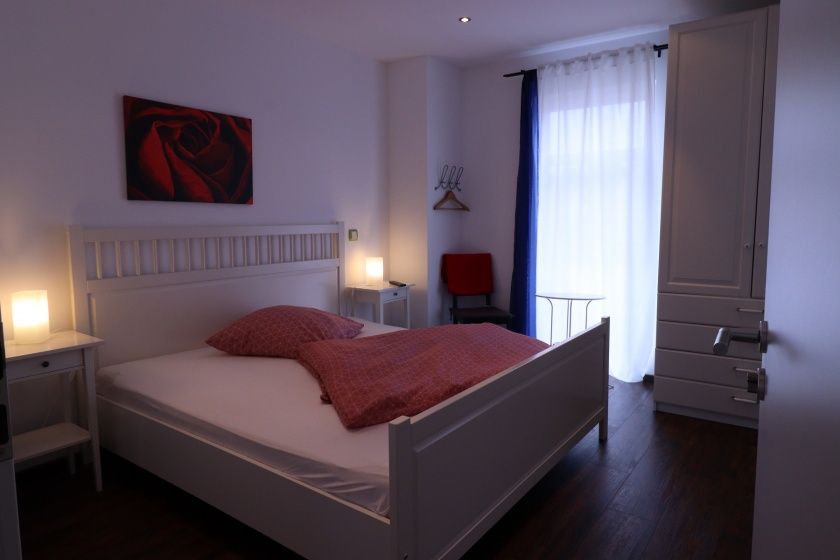• Schlafzimmer mit Boxspringbett 180 cm auf 200 cm (Bettwäsche inklusive)