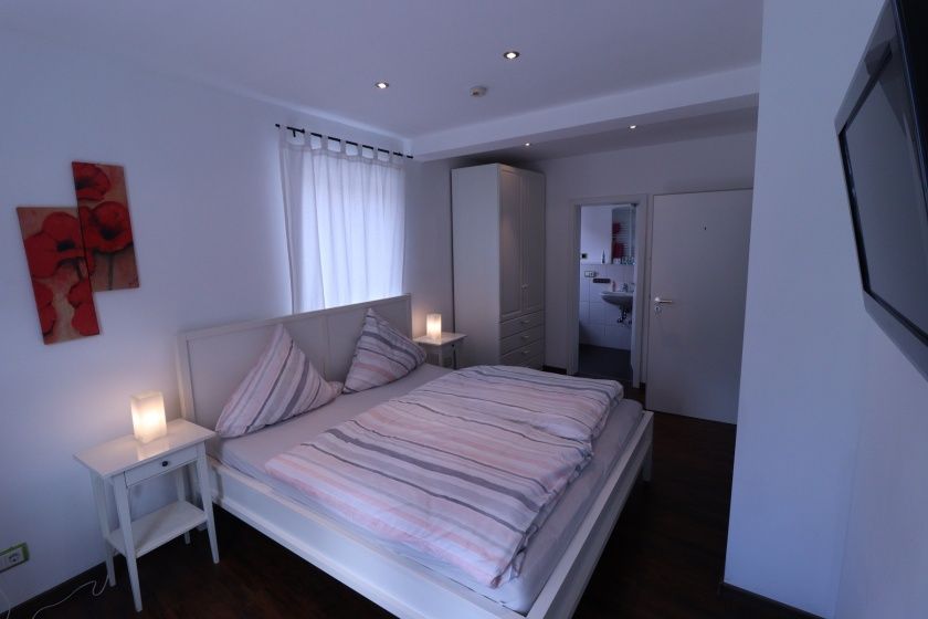 - Schlafzimmer mit Boxspringbett 180 cm auf 200 cm (Bettwäsche inklusive)