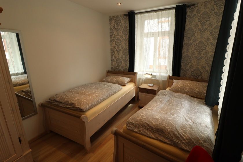 • Schlafzimmer 2 mit zwei getrennt stehenden Betten je 90 cm auf 200 cm (Bettwäsche inklusive)