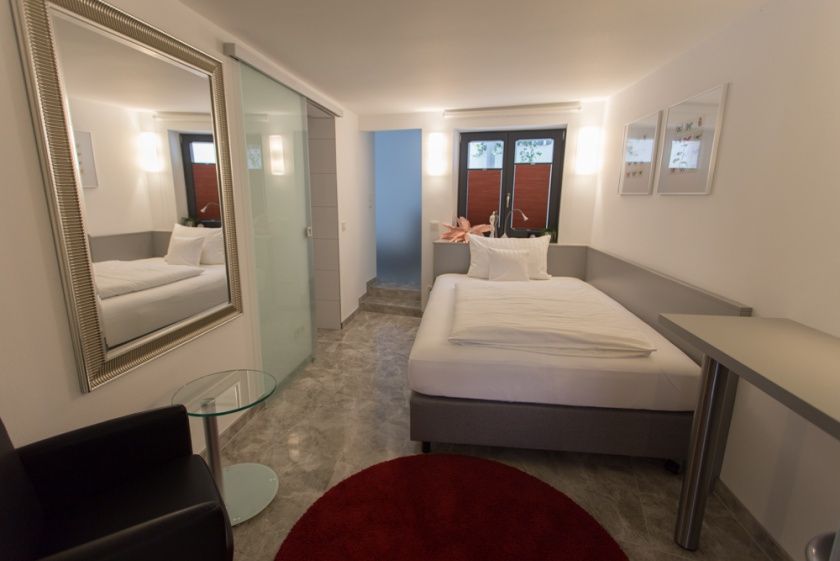 - In unserem eleganten Apartment Atrium richtet sich der Blick in unseren Innenhof. Hier können Sie herrlich das Atriumambiente von oben genießen. Die Besonderheit der Wohnung ist, dass Sie Wohnkomfort auf drei Etagen erleben können. Die Küche im Erdgeschoss macht es Ihnen leicht Ihre frisch zubereiteten Speisen im Atrium zu genießen.