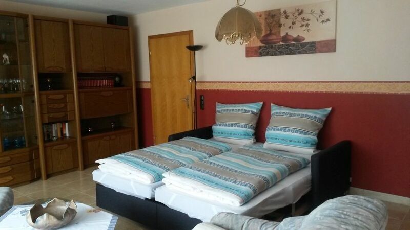 - Wohn/Schlafzimmer: Fernseher (Kabel), Radio, Sofa, Schlafsofa (200x125 cm), Esstisch mit 4 Stühlen, Bücher, Spiele