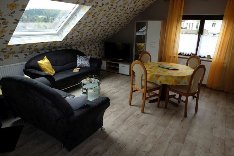 Die 70 qm große Nichtraucherferienwohnung besteht aus einem Schlafzimmer mit Doppelbett, einem großen Bad mit Dusche, einem Wohnzimmer mit separatem Schlafsofa und einer voll eingerichteten Wohnküche mit Geschirrspüler, Esstisch und Fernseher.