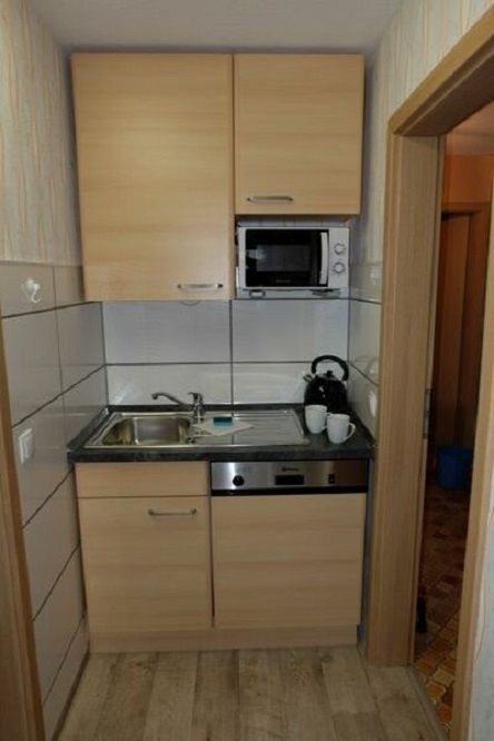 - Küche: Geschirrspüler, Kühlschrank mit Gefrierfach, Ceran- Kochfeld, Backofen, Mikrowelle, Kaffeemaschine, Wasserkocher, Toaster, Eierkocher, Handmixer, Fernseher, Radio, Geschirrhandtücher