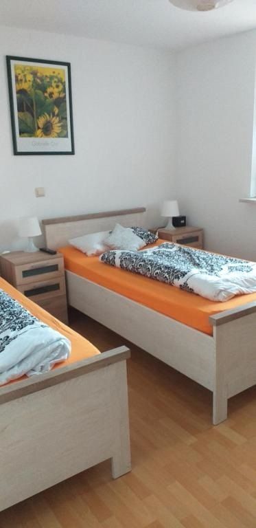 - 2 Schlafzimmer mit je 2 Einzelbetten (1x2m), einmal mit TV