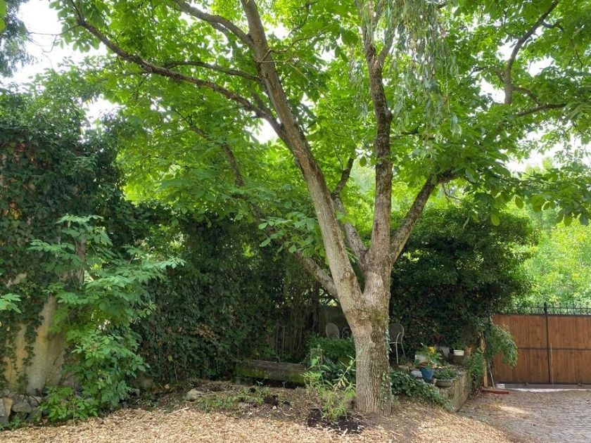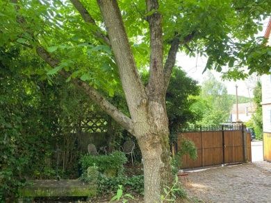 Das Haus ist sowohl von der Straßenseite, als auch durch die Hofseite zugänglich. Parkplätze findet man auf dem komplett hundesicher eingefriedeten, grün eingewachsenen Hofgrundstück.