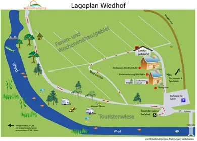 - Der Campingplatz Wiedhof, wo sich auch die Ferienwohnung „Wiedliebe Deluxe“ befindet, liegt am Ortsrand vom Luftkurort Waldbreitbach und nur wenige Fußminuten vom Zentrum entfernt.
