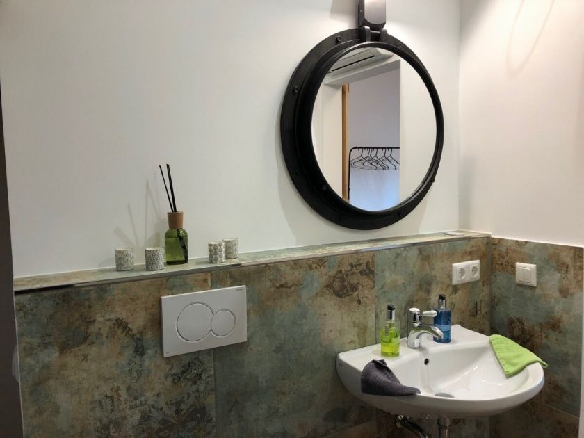 - Badezimmer mit Dusche, Badewanne und WC