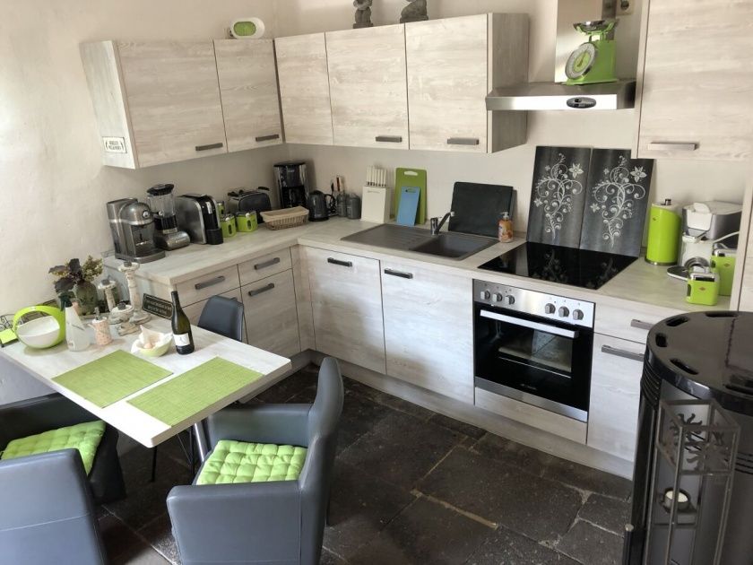 - Küche mit Herd, Backofen, Kaffeemaschine, Kühlschrank, Geschirrspüler, Wasserkocher, Toaster, etc.