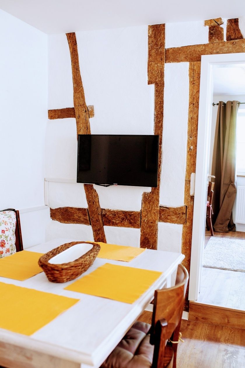 Die Ferienwohnung "Friedrich" und das Ferienapartment "Marlene" befinden sich in einem 1780 gebauten Fachwerkhaus in der mittelalterlichen Gasse "Helle". Das Haus wurde von Grund auf saniert.