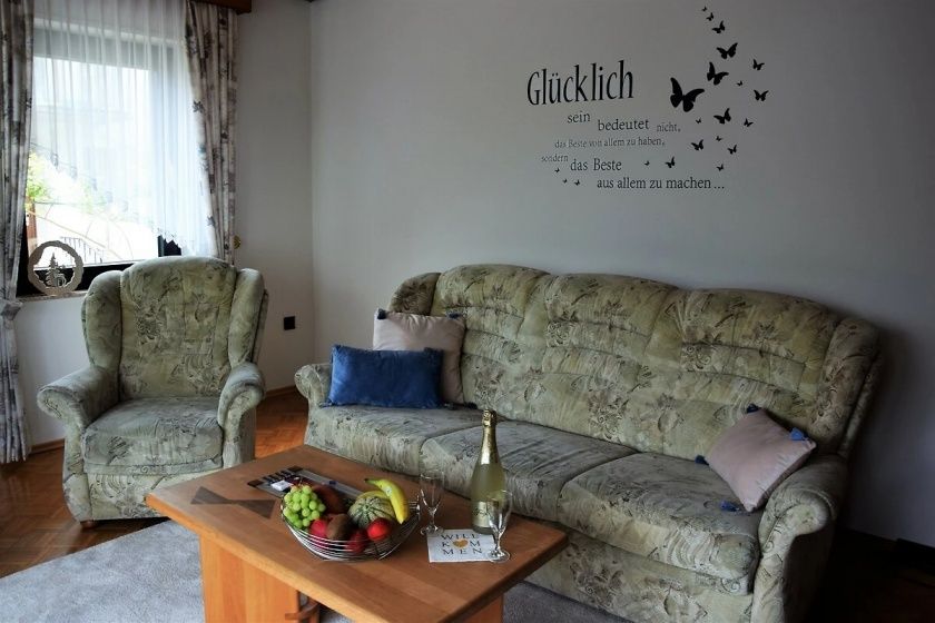 Entspannen Sie sich auf der Terrasse oder im gepflegten Garten und genießen Sie die Ruhe und Schönheit der Natur. Für zusätzlichen Komfort sorgt das schöne Wohnzimmer das ihnen einen traumhaften Ausblick nach Süden bietet. WLAN steht Ihnen kostenfrei zur Verfügung.