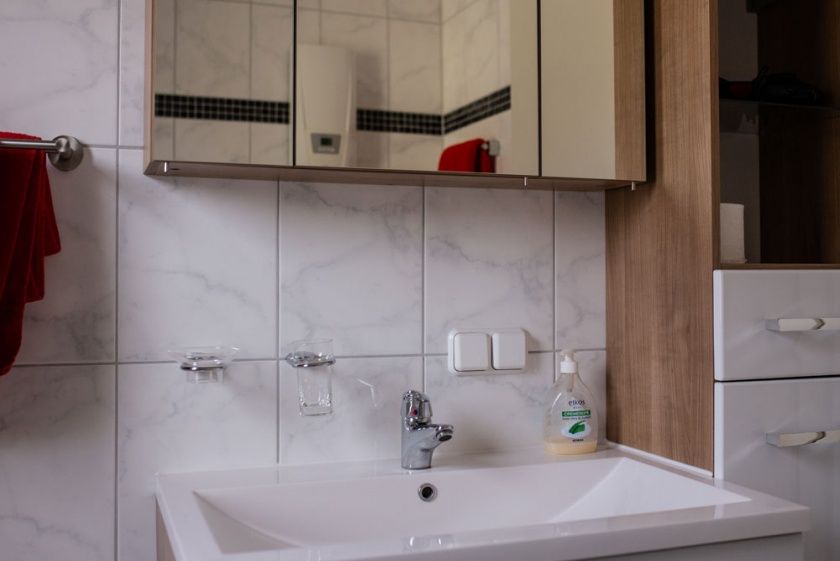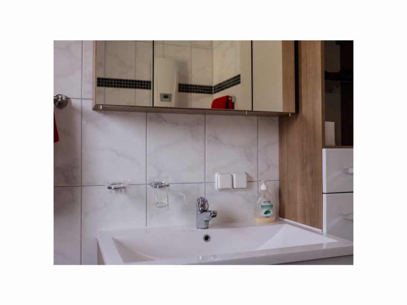 Auch in dieser Wohnung befindet sich ein Schlafzimmer mit Doppelbett und eine komplette Küchenausstattung. Da diese die kleinste von beiden Wohnungen ist, eignet diese sich ideal für einen Urlaub zu Zweit.