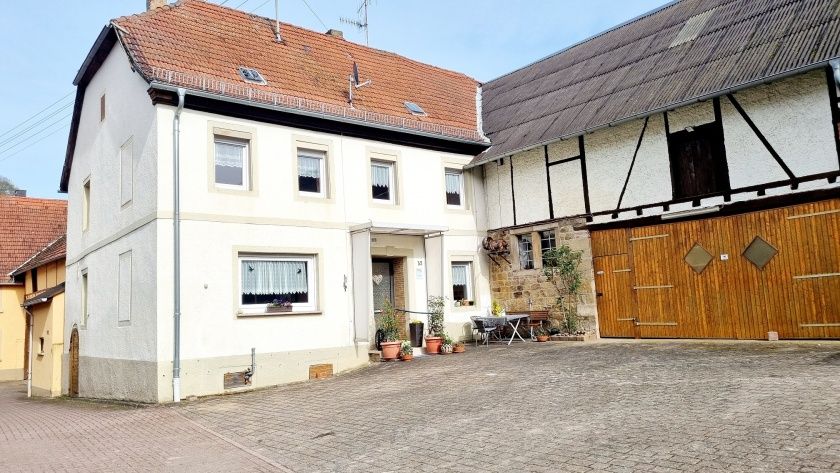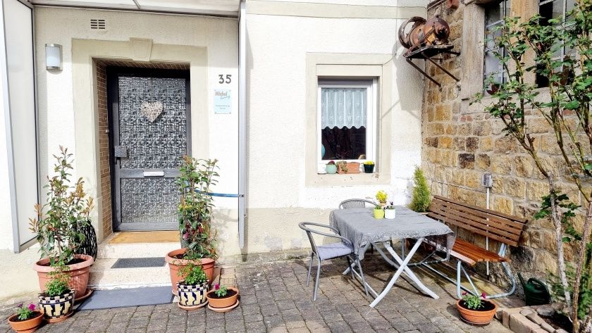 - Gemütliche Sitzecke mit Gartenmöbeln vor dem Haus