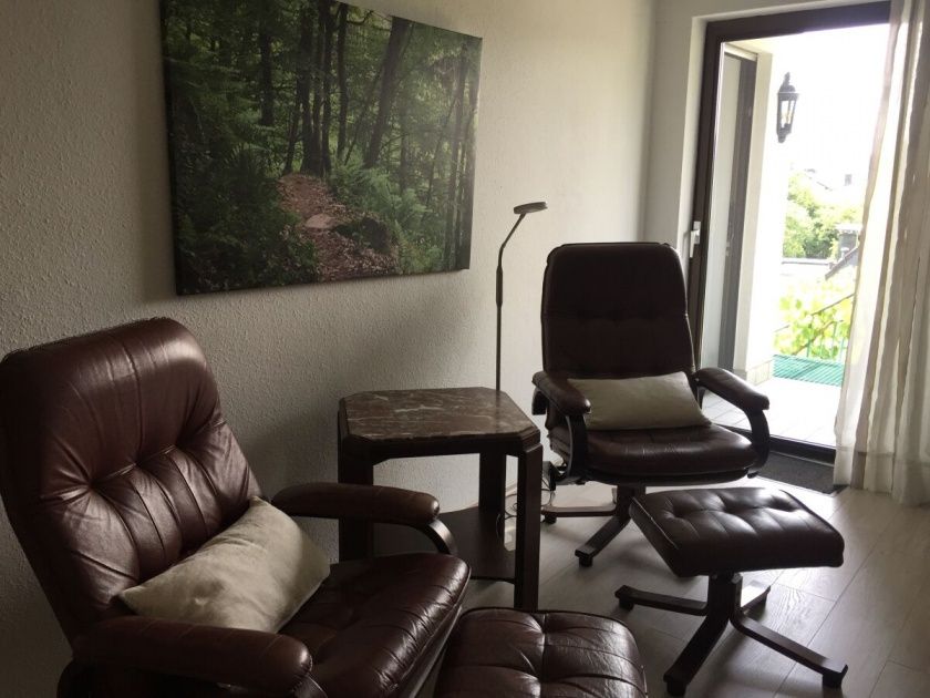 Vom Balkon aus haben Sie einen schönen Panoramablick auf die Burg Arras und den Prinzenkopfturm. Ein Garten mit Liegewiese, Weinlaube und Grillplatz befindet sich an der Wohnung. Ein Parkplatz steht Ihnen zur Verfügung.
