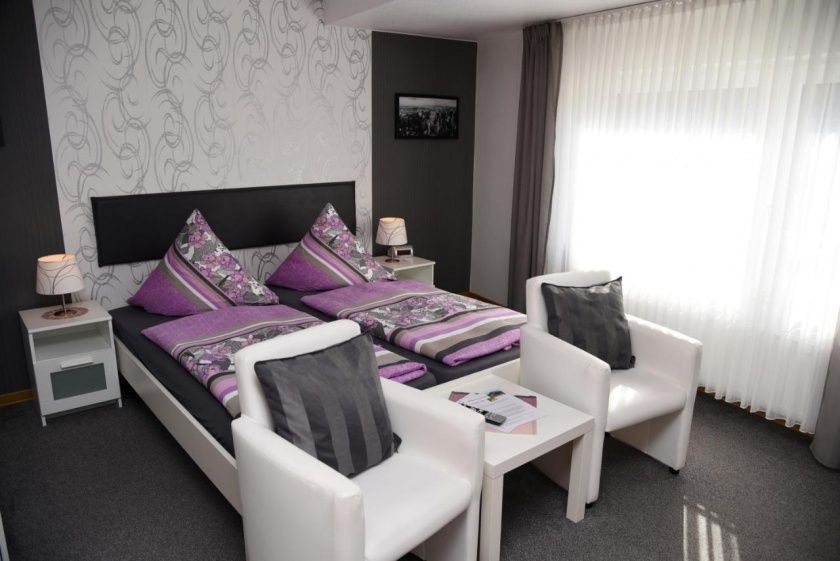 All unsere gemütlichen Doppelzimmer sind mit Dusche/WC, SAT Flachbild TV und einer Sitzgruppe ausgestattet. Teilweise gibt es Balkon oder Burgblick.